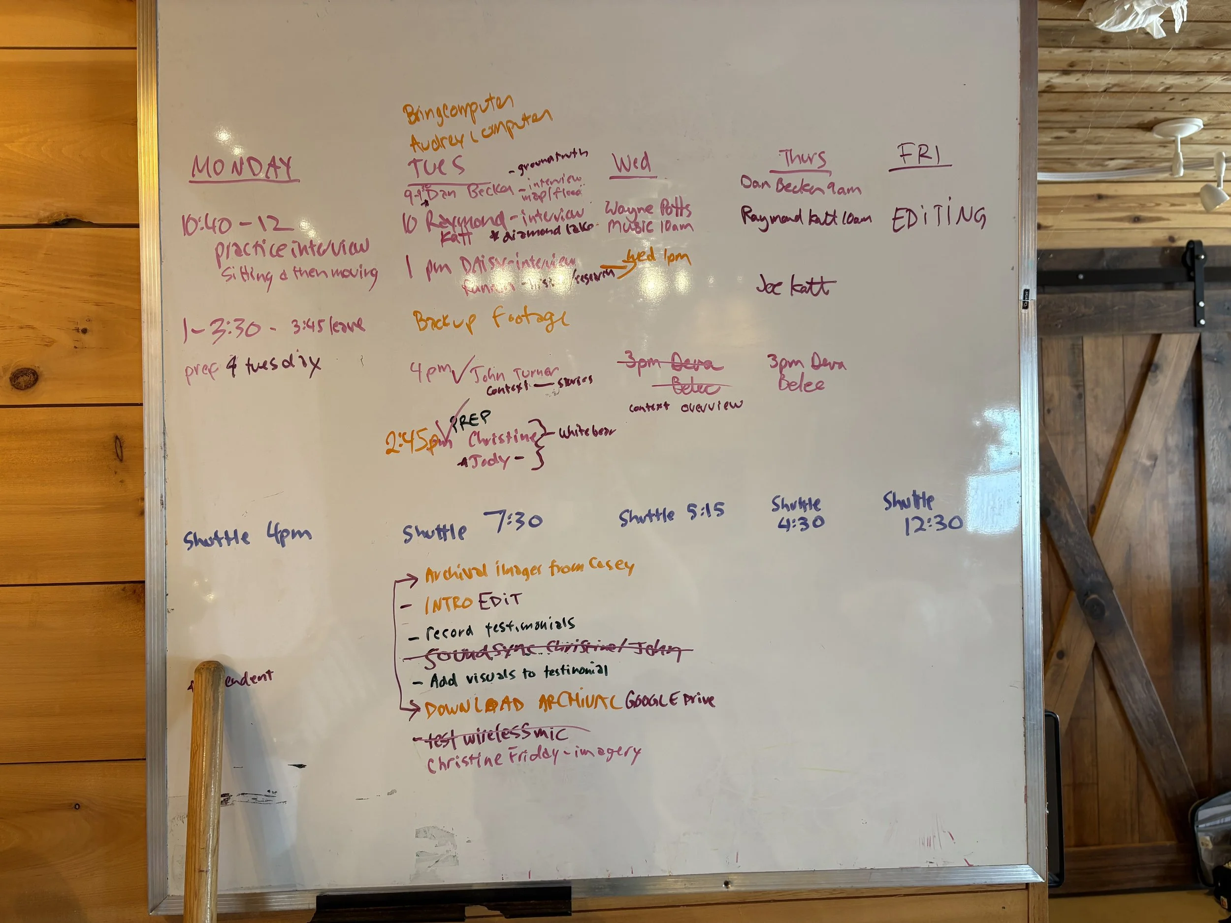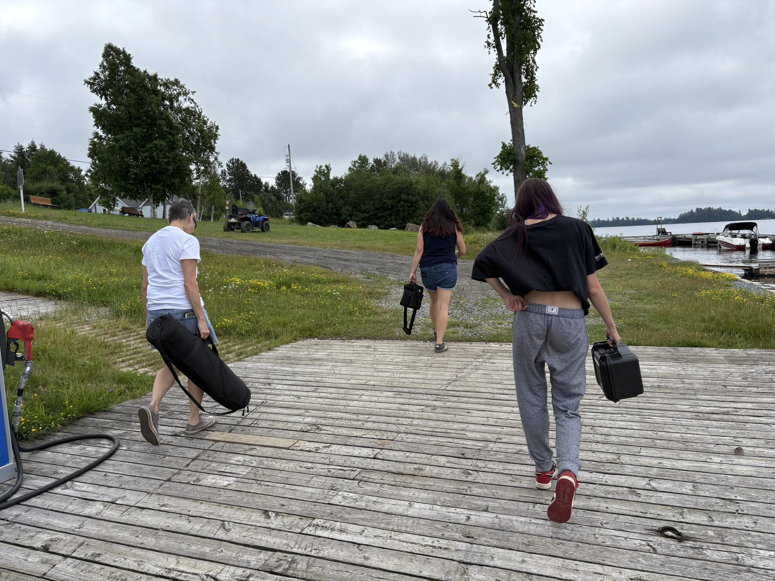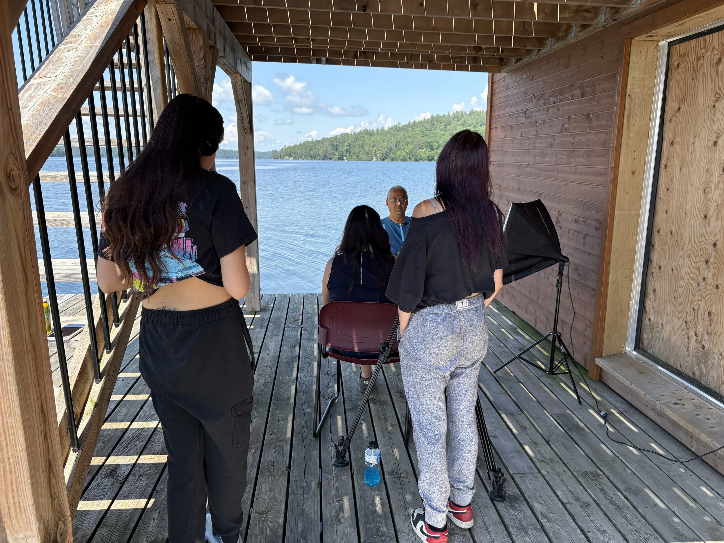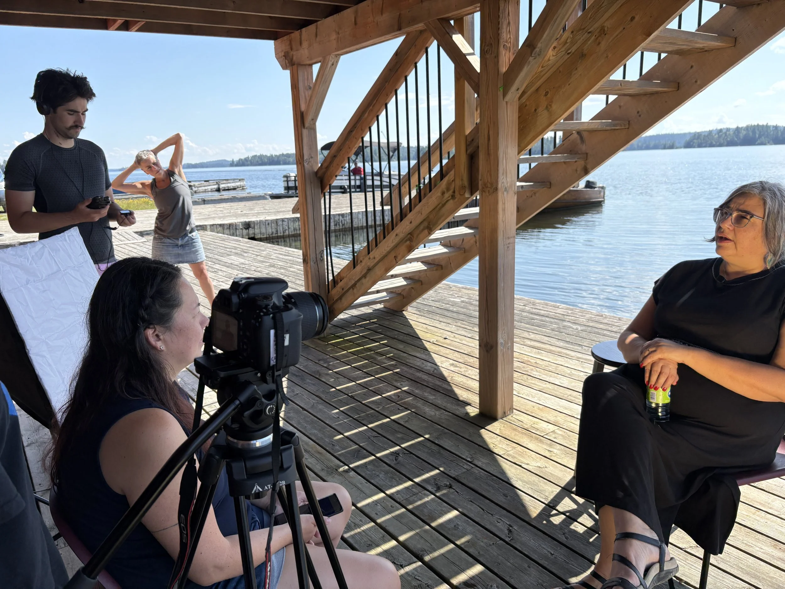 Back at the Canoe House, we recorded Ericka’s testimonial voiceover, followed by a powerful interview with Joe Katt. To close the day, we recorded an interview with Chief Shelly Moore-Frappier — who is also Eddie G’s mother! Casey and Lisa g captured b-roll recreation of moccasins during the flood — hopefully it will add an artful, atmospheric layer to the story.