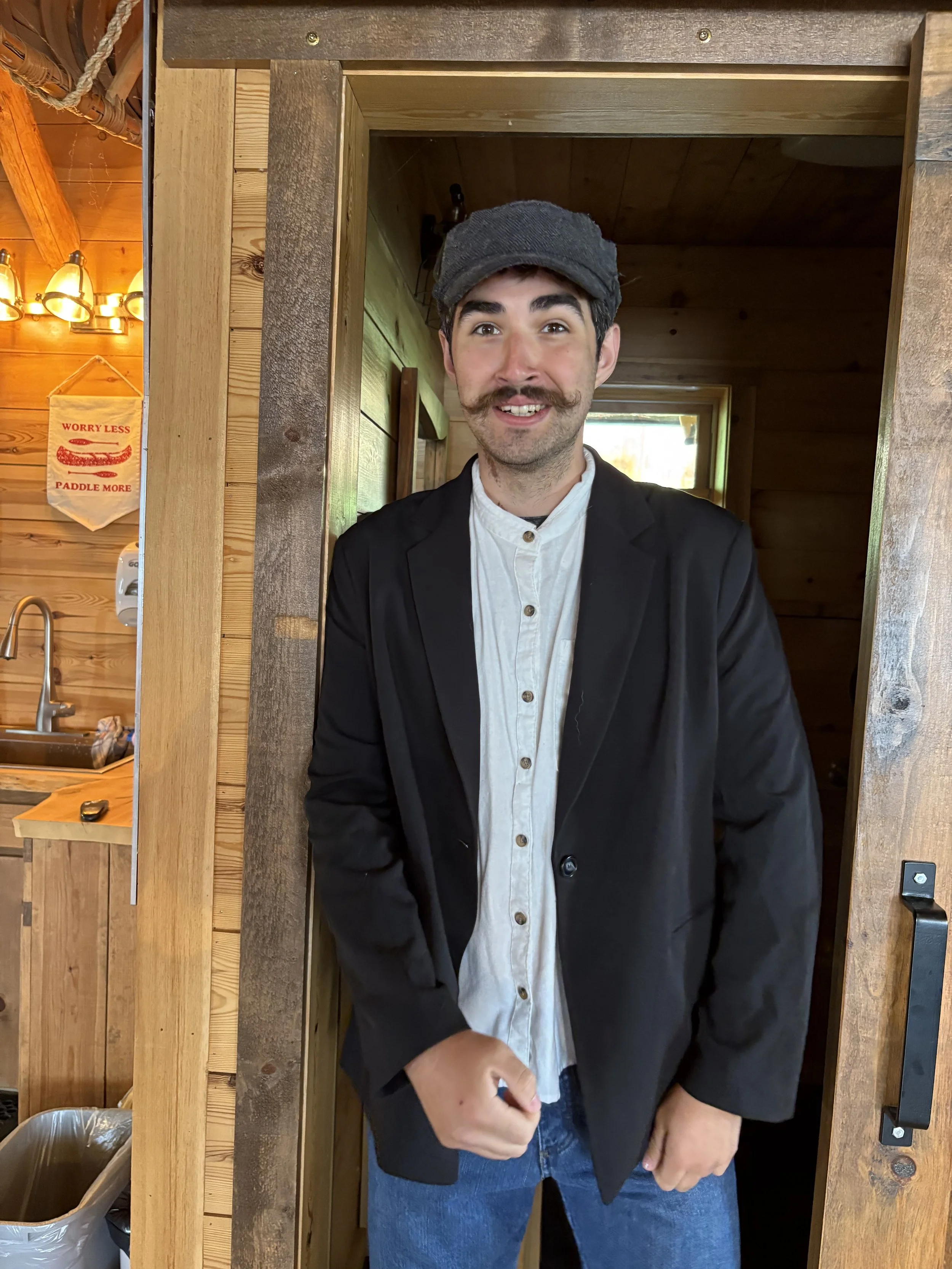 Casey and Eddie got a costume together and Andrew collected live sound of water. Eddie donned his costume and it was right out of the 1900’s! The film team went to the school: Andrew and Audrey handled camera work while Eddie acted as someone fleeing the flood with a child.