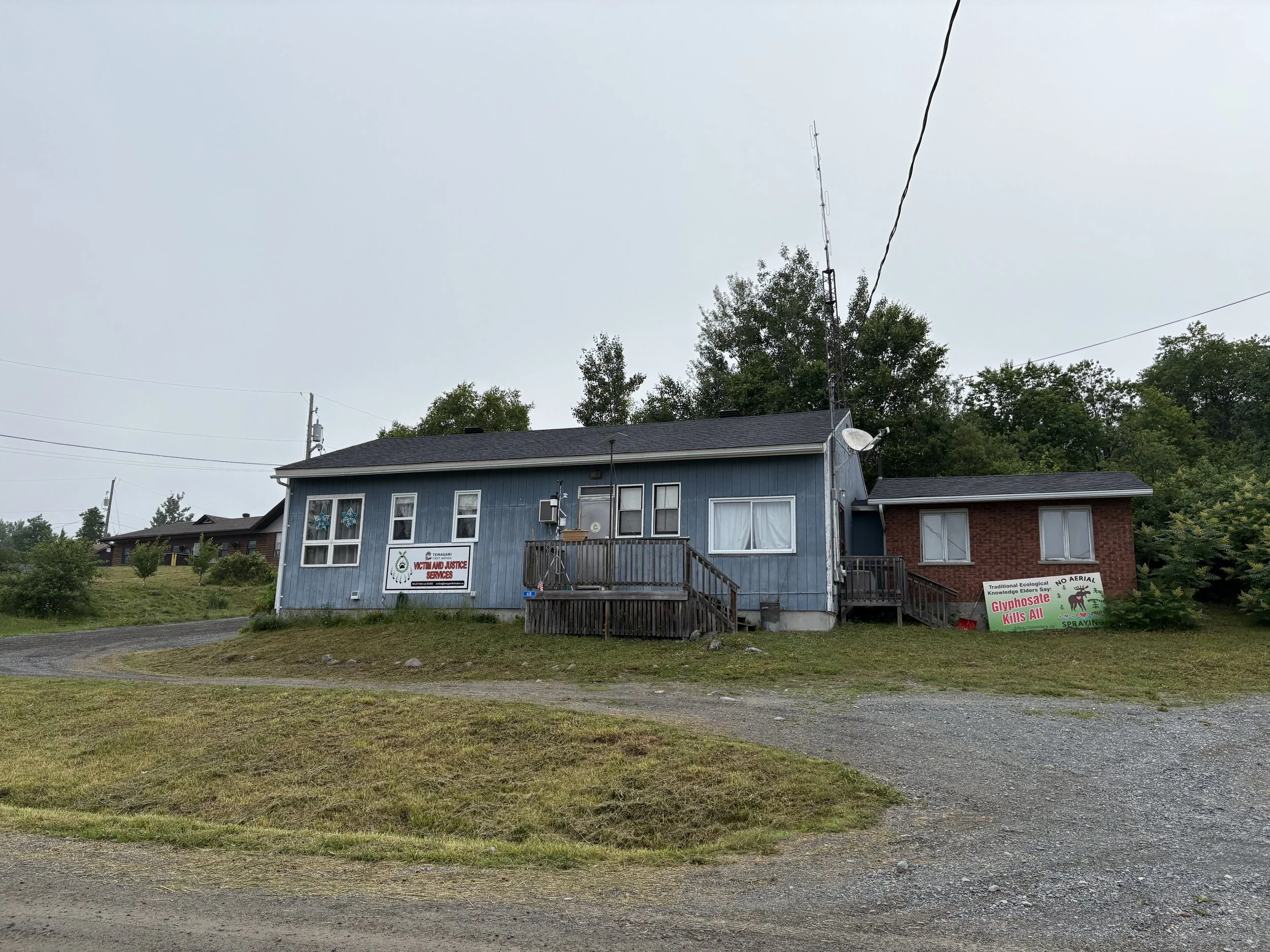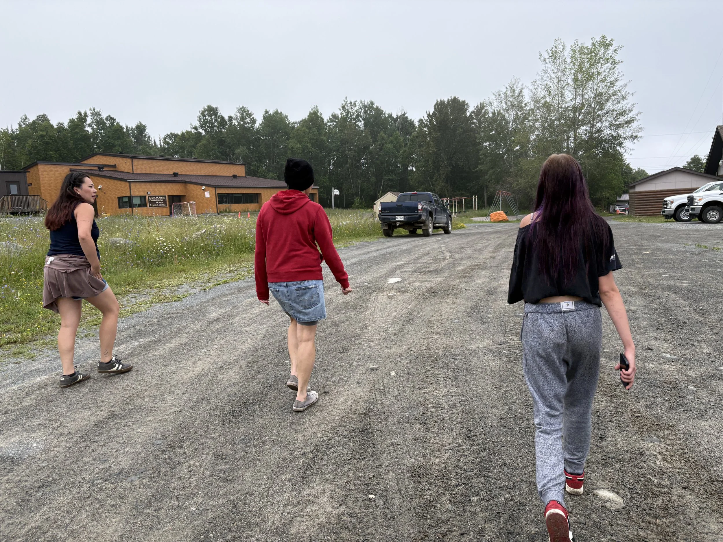 We had a quick walk around the island to start the day: Nadine, Casey, Audrey and Lisa g. Then jumped right into making sure the student laptop would be functional after we leave, and had a few more kinks to work out as we transferred from Mac to PC. But as we know, filmmaking always has a few technical issues….so Lisa g re-built Audreys edit while Audrey and Nadine visited the band office to gather archival footage.