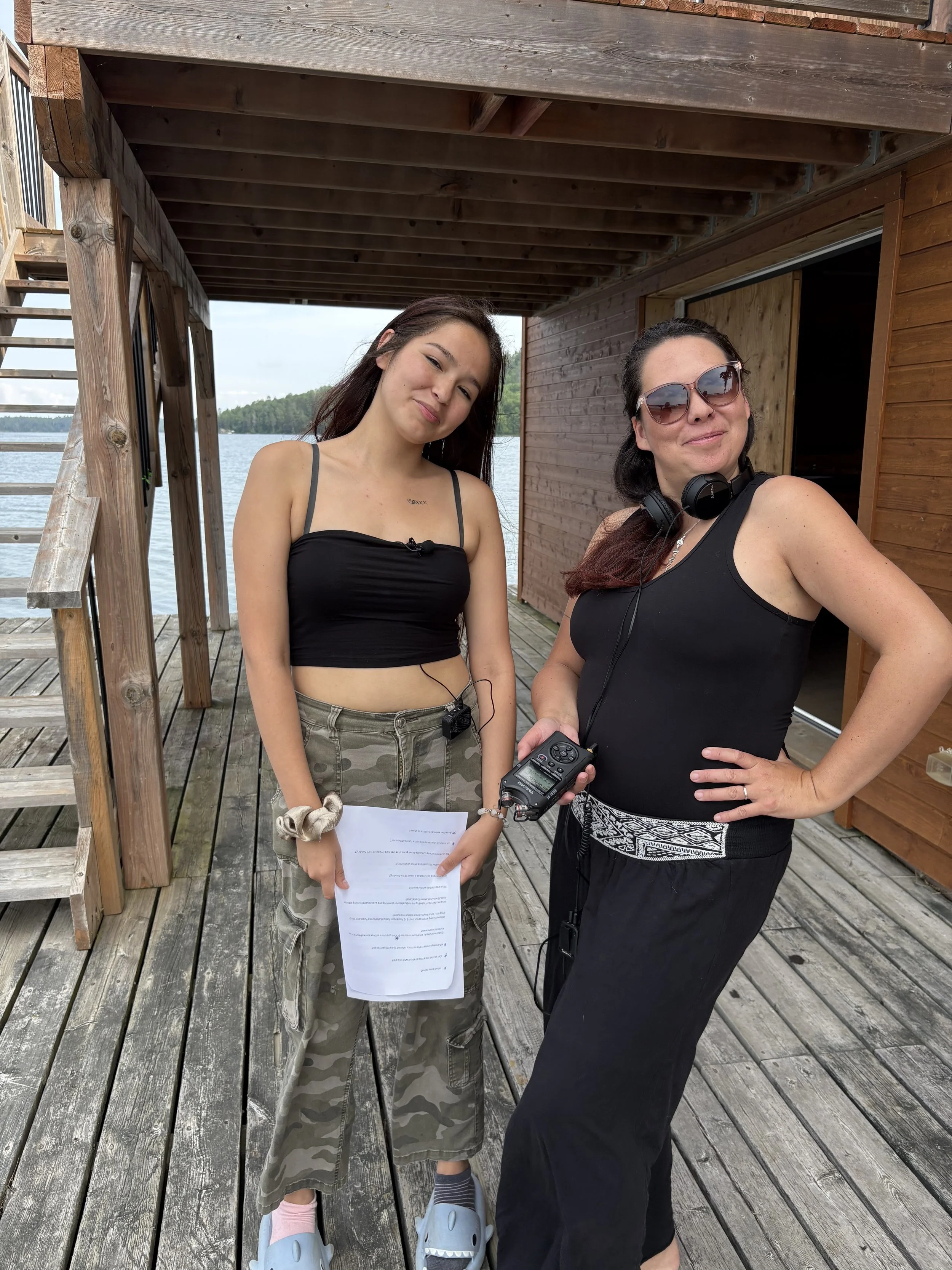 We also squeezed in one more interview! This time a ‘walk and talk’ with Deva! It was a beautiful day to do this and we practiced using the 2 wireless lapel mics! Ericka was on camera asking the questions, Casey did sound and Lisa g and Nadine worked the cameras.